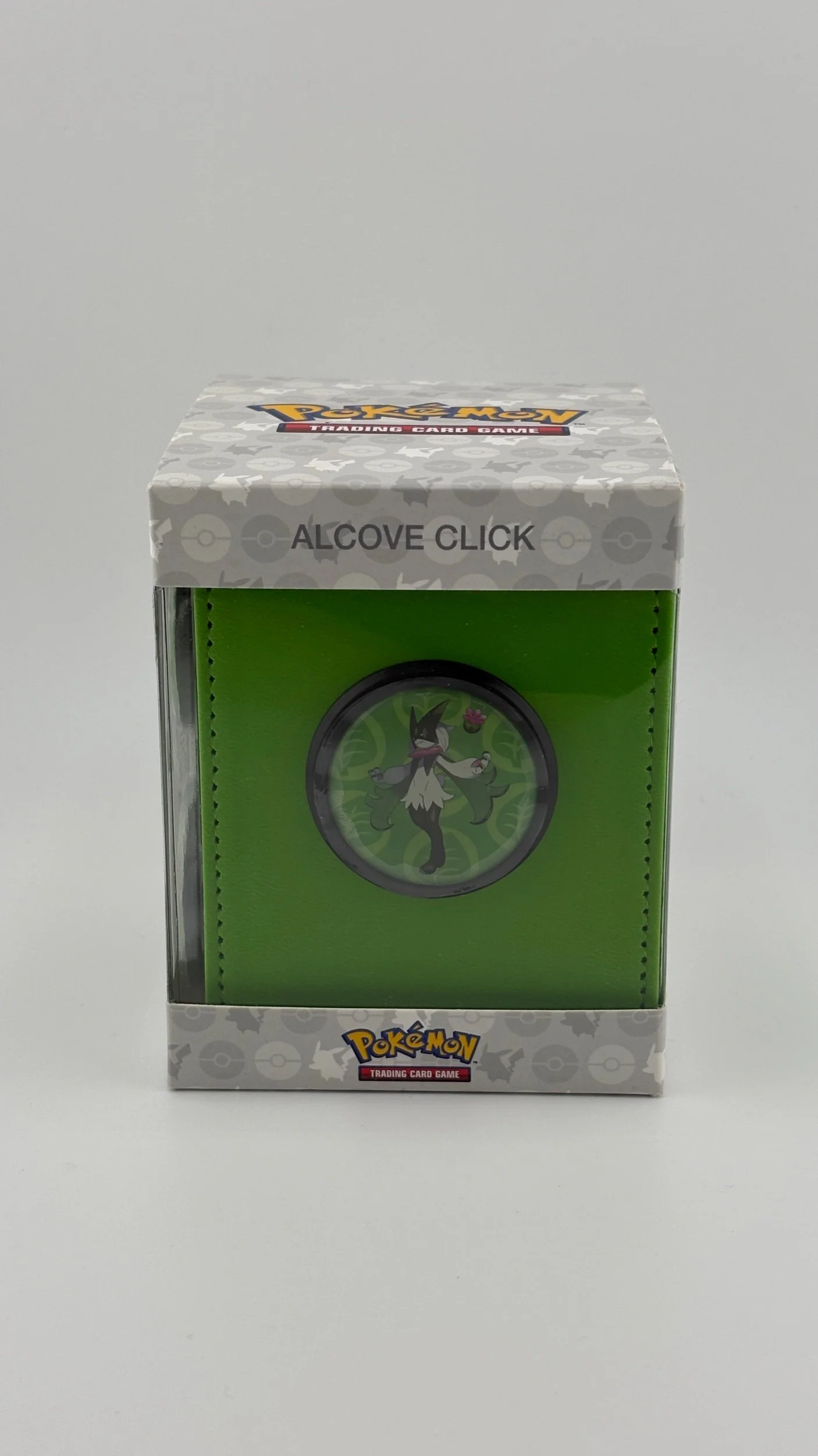 Collect, store, and personalize with the Alcove Click for Pokémon! The Alcove Click comes with themed badges. This Deck Box holds up to 100 standard size trading cards double-sleeved in Ultra PRO Deck Protector sleeves, features a strong magnetic closure, and has dual thumb notches for easy access to your deck. Personalize your Alcove Click by popping on your favorite magnetic badges and replacing them with other badges. Badges have a 1.5 in. diameter.